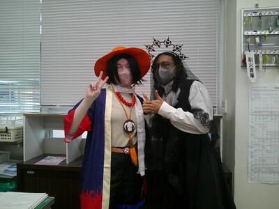 10月31日はハロウィン。今日は、ALTのお二人が、素敵なコスチュームで出勤され、校内で大人気でした!!こういった海外ならではの文化を直接学ぶことも、大事な国際理解ですね。サラ先生もジェレミー先生も、とっても楽しんでおられる様子でした!Trick or Treat!の意味、わかったかな?