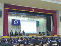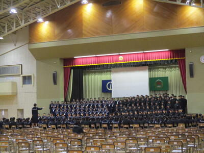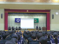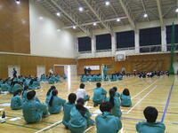 そのあと、明日の音楽学習発表会に参加する2年生が、学年合唱を披露してくれました。合唱コンクールでは、各学級の団結を見せてくれましたが、今日は2年生という学年の団結を、素晴らしい歌声として表現してくれました。240人の歌声に圧倒されたのではないでしょうか。明日は本番。1・3年生のエールを力に、頑張れ2年生!