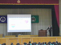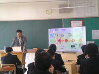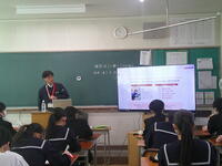 2年生を対象に、敦賀市にお住まいの弁護士の方を講師に「いじめ防止授業」が行われました。授業は1つの事例をもとに進められ、個人で考える場面、グループで話し合う場面、学級・全体で発表する場面が設けられました。また、体育館での一斉授業のあとは、各学級に戻って振り返りも行い、どの学級でも、真剣に自分事として考える姿が見られました。事例の中のCさんやDさんになった経験はないか・・・自分の行動を今一度考えてみるよい機会となりました。「小さなNO」という言葉を忘れずに、これからの生活を送っていきましょう。