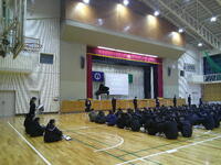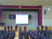 今日で2025年の登校日は終了です。明日から15日間の冬季休業に入ります。昨日から今日にかけて、各学年では今年を振り返る学年集会が行われました。休業中の過ごし方について確認したり、各委員長や学級長がこれまでの取組を振り返ったりと、「しめくくり」の集会が行われました。