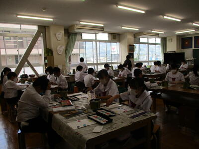 小学校の先生方をお招きして1年生の授業を見学していただきました。中学校でのがんばりを見ていただく良い機会となりました。生徒たちも久しぶりに会う小学校の先生に素敵な姿を見せようと活動に取り組んでいました。
