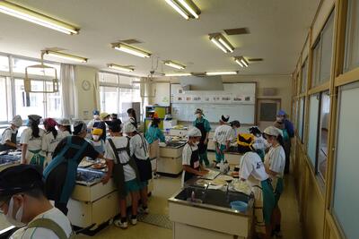 今週から、1年生の各クラスで調理実習が始まりました。メニューは鮭のホイル焼きです。