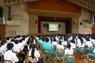 敦賀警察署の方をお招きしてひまわり教室を開催しました。SNSでのトラブル、薬物についてなど中学生に関係がある事例をもとにお話をしていただきました。自分を大切にすること、相手を大切にすることを学びました。