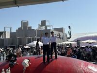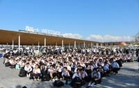 報道にある通り、とてもたくさんの人が万博を訪れていました。特にお昼を過ぎてからは、会場内の密度が午前中とは全然違いました。また、予想していたよりも気温が高く、とってもいいお天気だったため、まずは日陰を探す班も多かったのではないでしょうか。