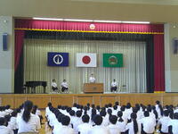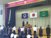 また、始業式と併せて受納・表彰も行われました。2年生が主体となって行われた新人大会の表彰がメインでしたが、多くの団体が優勝トロフィーを勝ち取るという素晴らしい結果でした。明日からの県大会でも、二州地区の代表として自信を持って挑んできてください。ガンバレ、粟中生!