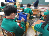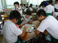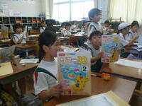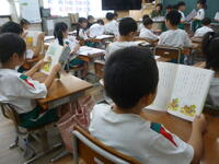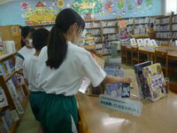 図書委員会では、子どもたちが主体となって、先月から読書活動の推進に取り組んでいます。読んだ冊数をスタンプラリーで記録し、1枚が埋まると本を多く借りられるチケットや、図書委員手作りのしおりがもらえる仕組みです。感染対策として学年ごとに利用日を分け、密を避けながらも、子どもたちは楽しんで参加しています。地域の読書ボランティアの皆さまによる掲示物も図書室を彩り、落ち着いた雰囲気を演出しています。