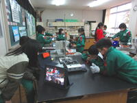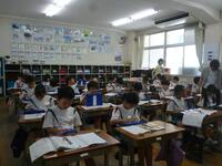1年生は、繰り上がり・繰り下がりのある計算に意欲的に取り組んでいます。2年生は、身近な材料を使って制作する、動きのあるおもちゃの設計を考えていました。3年生は、説明文の学習を生かして、「食べ物の工夫」をテーマに自分の説明文づくりに挑戦しています。4年生は、金属を使った実験で熱の伝わり方の違いを確かめました。5年生は、昆布・煮干し・かつおでだしをとり、「うま味」の違いを比べる学習をしていました。6年生は、「将来のわたし」をテーマに、針金を使った立体造形に取り組み始めました。