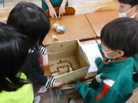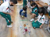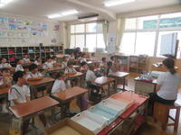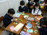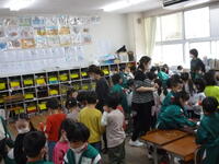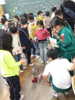 1年1組の教室に校区の保育園の年長さんが来てくれました。1年生は、自分たちで準備してきたおもちゃを使って、さまざまなお店を開き、お兄さん・お姉さんらしく優しく丁寧に遊び方を教えてあげる姿があちこちで見られました。もうすぐ2年生になるという自覚が芽生えるとともに、年長さんにとっても小学校の雰囲気を知るよい機会となり、楽しいひとときを過ごすことができました。