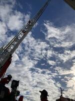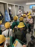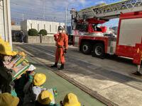 3年生が消防署を見学させていただきました。消火活動や消防車の装備について教えていただいたり、放水体験では水の勢いに驚きながらも楽しんで取り組んだり、防火服を着させていただいてその重さに驚いたりしていました。最後には、はしご車を約40メートル伸ばしてくださり、見上げるような高さに感嘆の声が上がりました。消防士さんの仕事の大変さや地域を守る思いを実感できる充実した学習となりました。お忙しい中ご対応くださった消防署の皆さま、ありがとうございました。