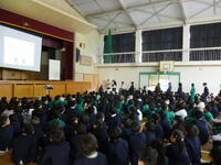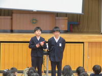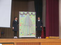 児童会運営委員会が企画した「全校人権集会」 を開催しました。日頃の生活を振り返りながら各クラスで話し合い、思いやりや相手を大切にする気持ちを込めたつくった 「人権標語」 を、クラスごとに発表し合いました。また、一人ひとりが作った輪飾りをつないで、全校で大きな「人権の木」 を完成させました。12月の人権月間にあわせて運営委員が心を込めて準備したこの集会は、子どもたち一人ひとりの思いがつまった、あたたかな時間となりました。