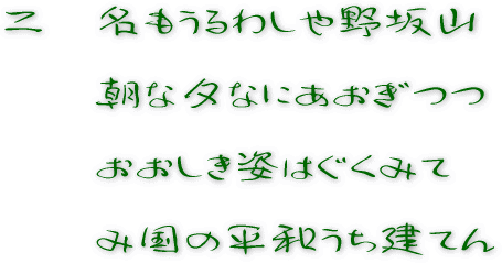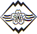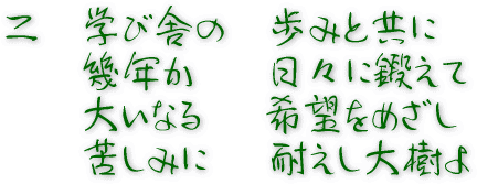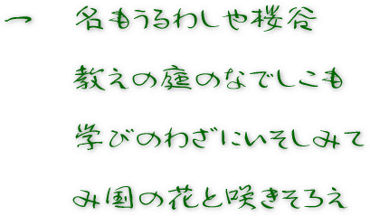 | 校章の上は野坂山のようにたくましく育つことを願い、三本線は井ノ口川を表している。 中心の桜は桜谷公園の桜花を表現。 下の山は野坂山が井ノ口川に映っている意味を表現している。 |