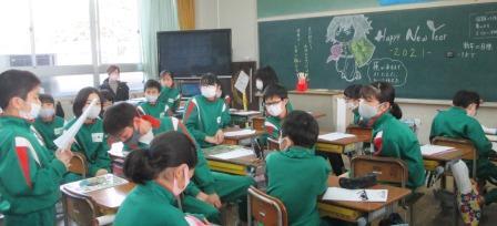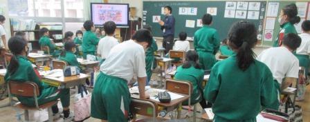 3年生はお楽しみ会で「じゃんけんゲーム」を楽しんでいました。
