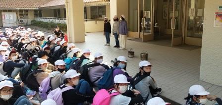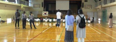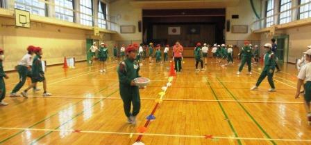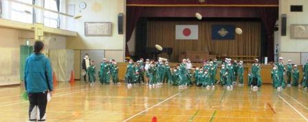 1年生は、お楽しみ会で「爆弾ゲーム」を始めるところでした。