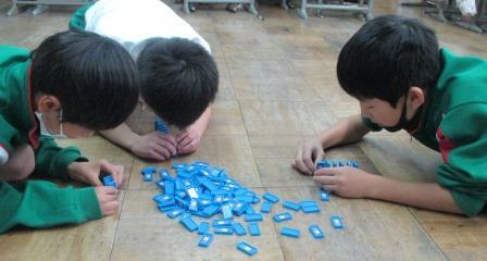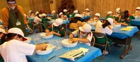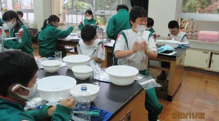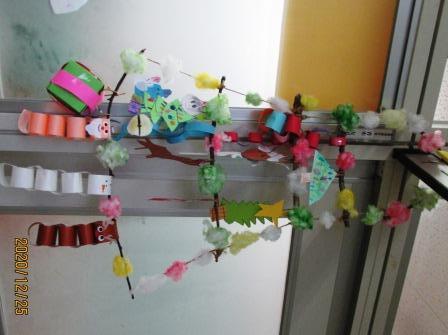 5年生は「折り紙で作ったもの」をみんなで囲んでいました。