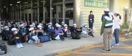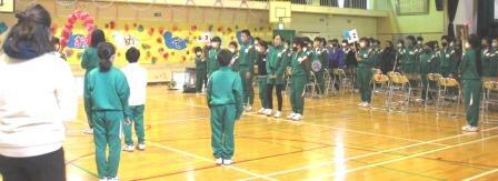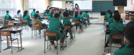離任される先生の挨拶をしっかり見聞きする5年生です。