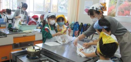 6年生は「野菜いためとスクランブルエッグ」の調理。