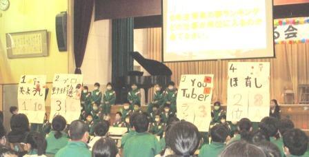 音楽室では5年生の子どもたち企画のお楽しみ会「紅白歌合戦」。