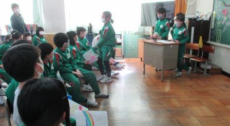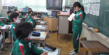 学級のみんなへの感謝の気持ち、5年生へ向けての決意などを発表です。