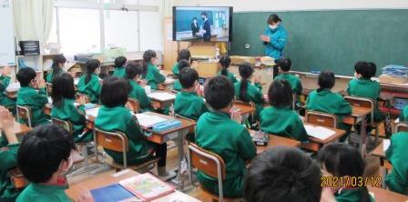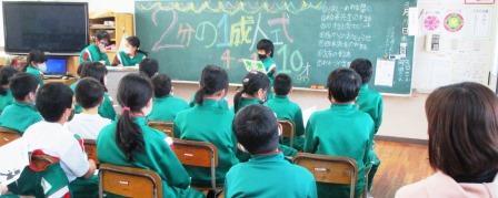 3年生はお楽しみ会で「じゃんけんゲーム」を楽しんでいました。