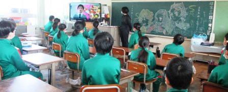 朝、放送による全校表彰がありました。1年生教室の様子です。