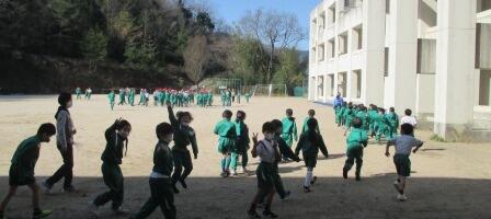 今日は快晴。昼休みには多くの児童が校庭に出て遊びました。