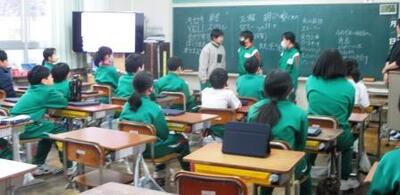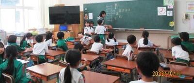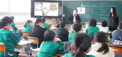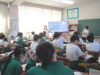 4年生教室では、教育実習生が外国語の授業にトライしていました。