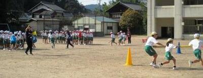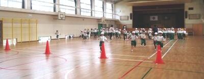 2年生は、体育で2チーム対抗リレーに取り組んでいました。