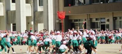 2年生は、体育会で「ダンシング玉入れ」の練習です。