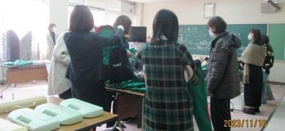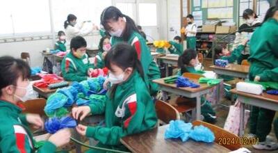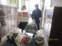 昨日、気比付属中の生徒さんが「届けよう服の力プロジェクト」の
