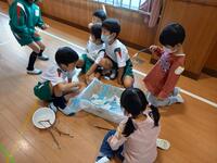家から持ってきた箱や材料を上手に使い、友だちと協力して、