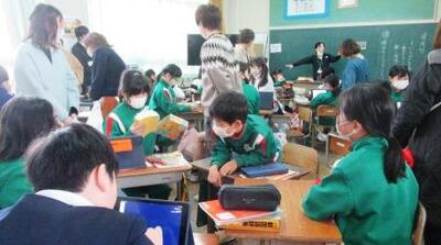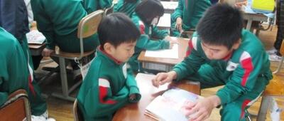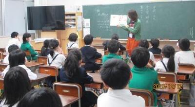 4年生は実習の先生と、国語で「ごんぎつね」の学習をしていました。
