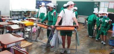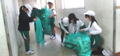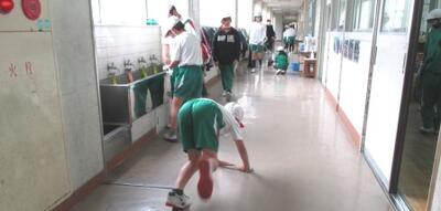 掃除②では、毎日の縦割りの掃除場所をいつも以上に丹念に!