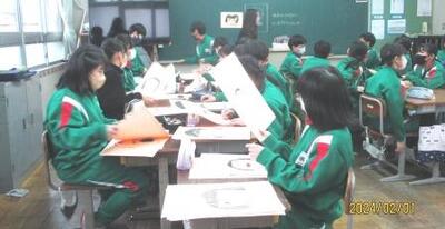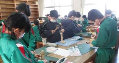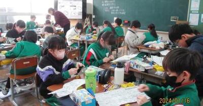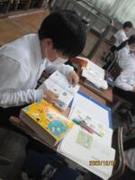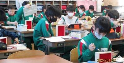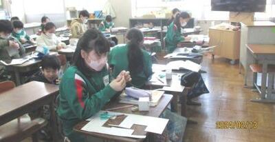 3年生は、図工で作品整理と作品袋作成に取り組んでいました。