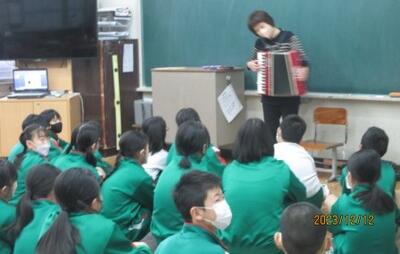 1年生は音楽で「とんくるりんぱんくるりん」の合奏に取り組んでいました。