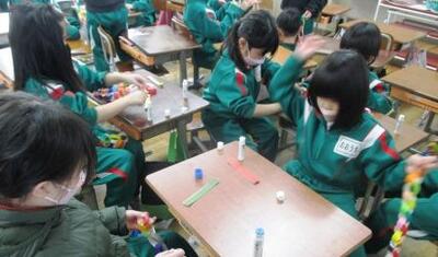 1年生は、生活科「もうすぐ2年生」の学習で、輪飾り作りにチャレンジ。
