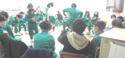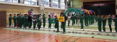 2年生はお楽しみ会で、人間バスケットを楽しんでいました。