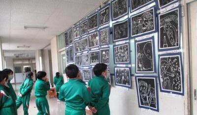 黒の台紙に絵の具がしっかりのり、すばらしい作品になりましたね。