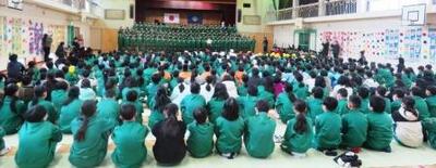 他、玄関の上、校庭、遊歩道、体育館、校長室などで、笑顔はじけていました。