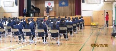 離任式では、年度末の異動で学校を去られる先生方とのお別れをしました。