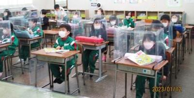 2年生は、音楽の授業の後、自分たちが使ったアクリル板を