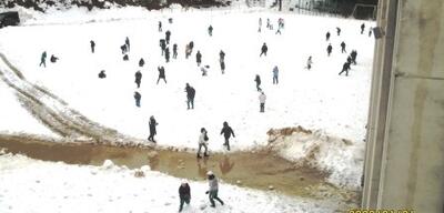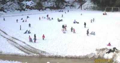 寒さにも負けず、子どもたちは宿題や大荷物を抱え元気いっぱい登校!