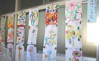 2年生はピンクの作品バックに好きな絵や文字を書き入れていました。
