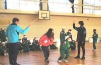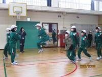 1年生は、寒さにも負けず、合同体育で「なわとび」に取り組んでいました。