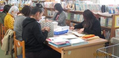 図書ボランティア会議、本の修繕・壁面制作も併せて行われました。