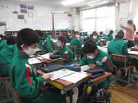 4年生は、今年最後の外国語活動を楽しんでいました。