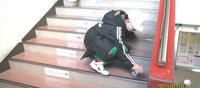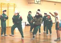 コツを教わりながら後ろ跳びに挑戦!苦手な子も一回ずつ、ちょん、ちょん…。