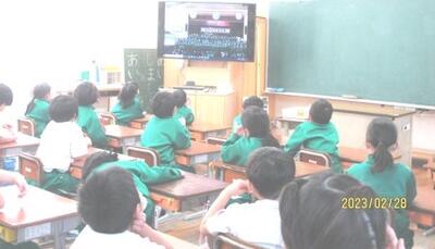小学校の生活や様子を伝えるためのビデオづくりに取り組んでいました。