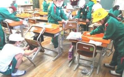 6年生が下校した後、5年生と職員で明日の会場準備をしました。