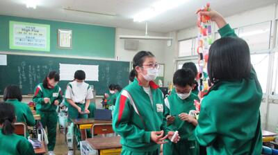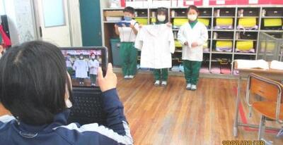小学校の生活や様子を伝えるためのビデオづくりに取り組んでいました。