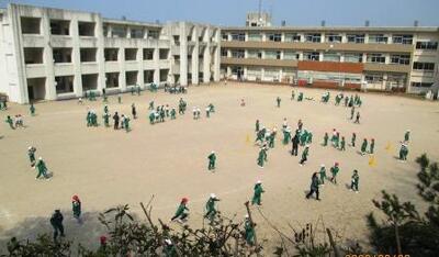 校庭からも、体育館からも、劔神社からも子どもたちの歓声が響きました。